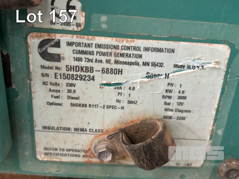PACKAGED GENERATOR, CUMMINS ONAN COMMERCIAL QD MOD: SHDKBB-6880H 4.8kw POWERED BY DIESEL ENGINE ALL FAULTS