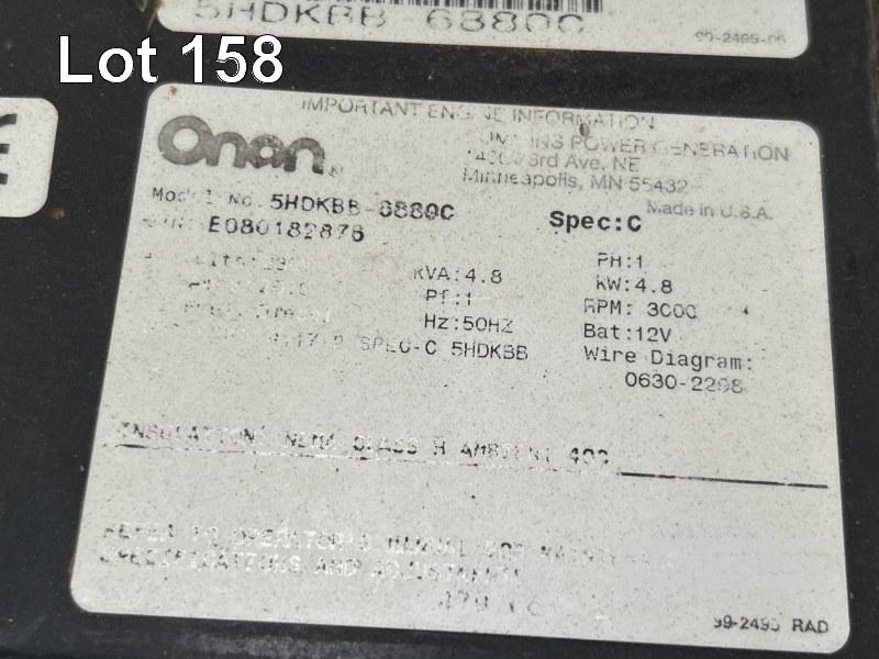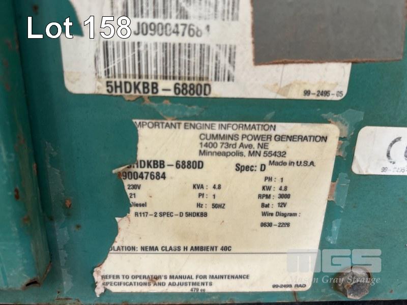 PACKAGED GENERATOR, CUMMINS ONAN COMMERCIAL QD MOD: SHDKBB-6880H 4.8kw POWERED BY DIESEL ENGINE ALL FAULTS