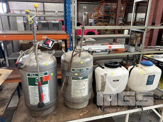 2 x EMERGENCY EYEWASH STATIONS, PRESSURISED TANKS & 2 x BACK SPRAY UNITS
