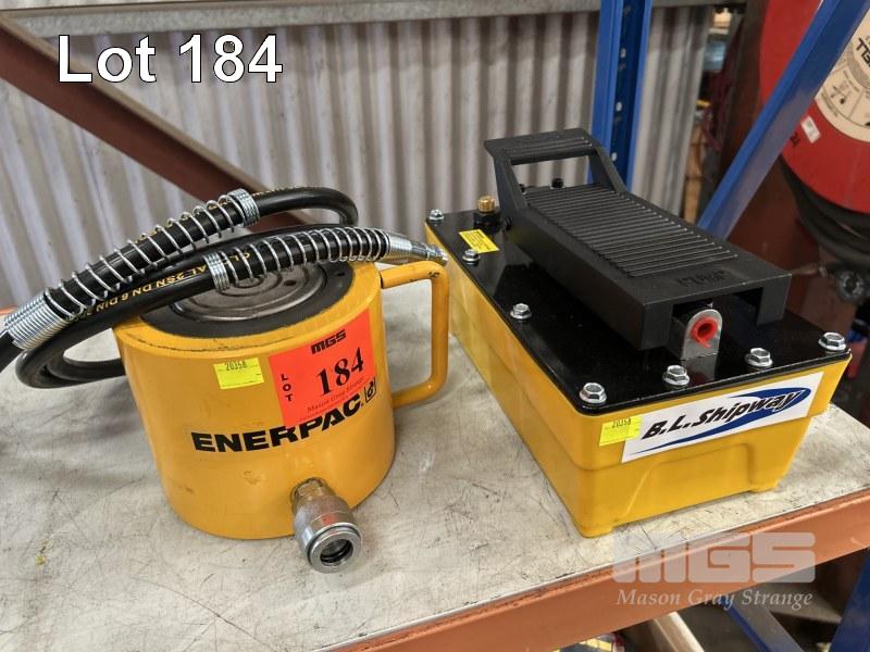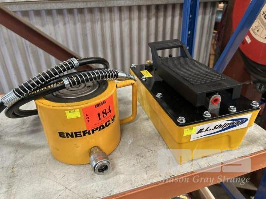 AIR POWERED HYDRAULIC FOOT PUMP, BL SHIPWAY MOD: ES102-SS2 10,000 PSI WITH ENERPAC 100 TONNE RAM & HOSE AS NEW