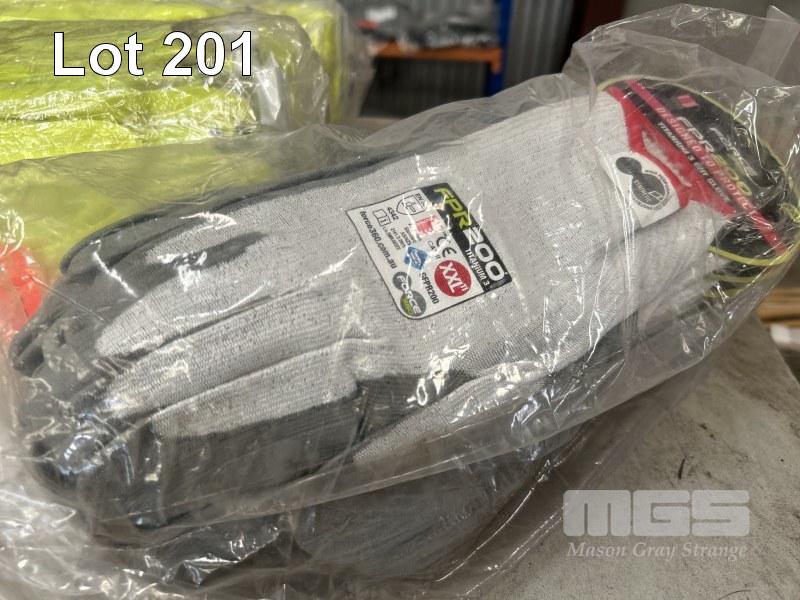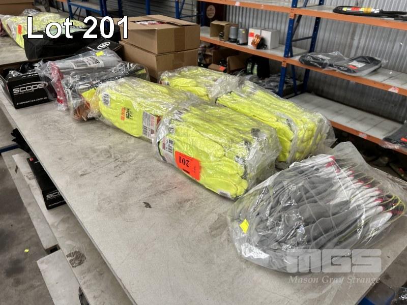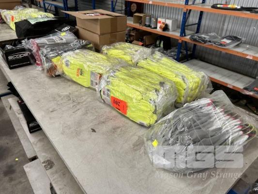 PERSONNEL SAFETY EQUIPMENT INCLUDING WORK GLOVES 12 x PAIRS FORCE 360, CUT RESISTANT, FPR200, SIZE: XXL, 48 x PAIRS PRO SAFETY HI VIS ARAX, 24 @ SIZE: 11 & 24 @ SIZE: 7 12 x PAIRS RIGGERS SUEDE, SIZE: S 10 x PAIRS PRO SAFETY, BHT, SIZE: 8 10 x PAIRS SAFETY GLASSES, SCOPE 3 x BOXES BELT CLIPS & 1 x BAG MILLERS TIE OFF SLINGS