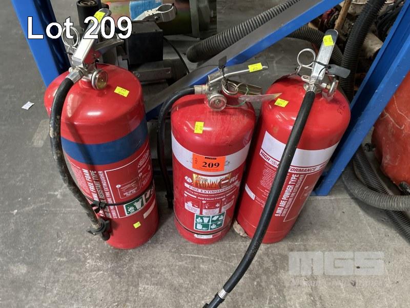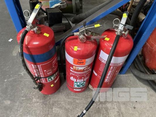 3 x LARGE FIRE EXTINGUISHERS DRY POWDER TYPE, 9kg CAP.