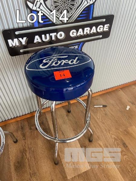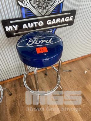 FORD VINYL TOP BAR STOOL, SWIVEL SEAT, CHROME FRAME