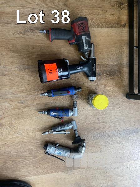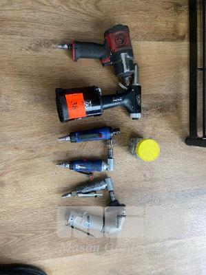 6 x ASSORTED AIR TOOLS INCLUDING: IMPACT GUN, RIGHT ANGLE DRILL, POP RIVET, DREMEL ETC.