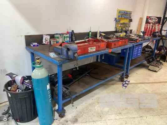 MOBILE WORKBENCH, 4mm STEEL PLATE TOP, 2 TIER, 2000 x 1000mm WITH ECLIPSE VICE MOUNTED