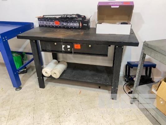 STEEL WORK BENCH, BLACK, 2 x DRAWER, 1500 x 650 x 770mm