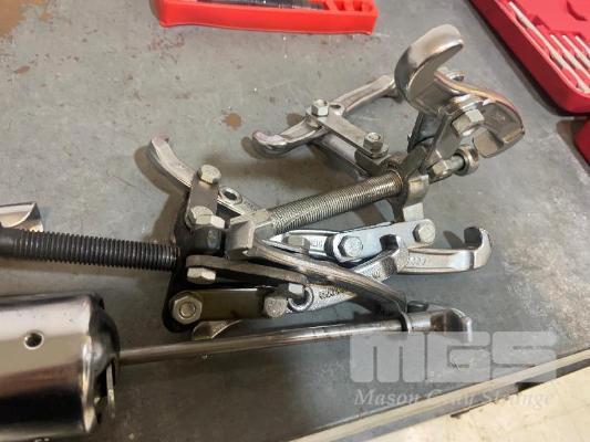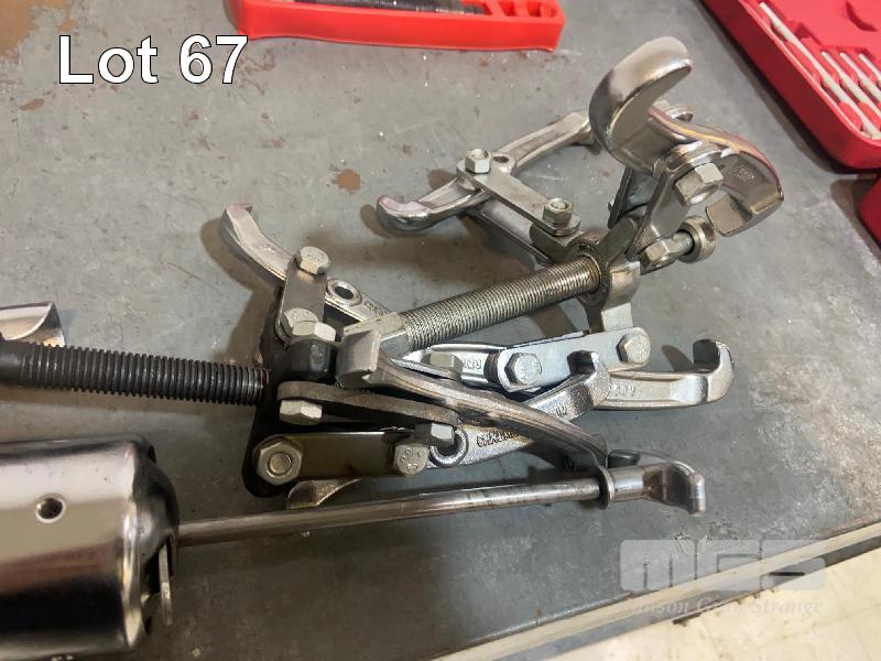 TOOL KING GREASE GUN, 3 x SPRING COMPRESSORS 3 x 3 JAW GEAR PULLERS