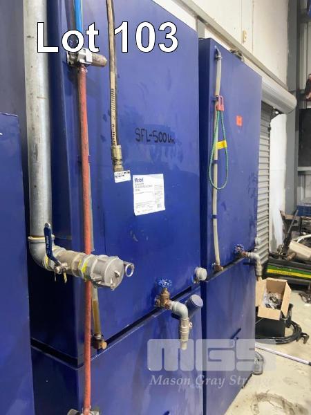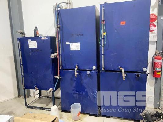3 x BULK OIL STORAGE, APPROX 575L CAP, 2 x WASTE OIL TANKS, APPROX 500L