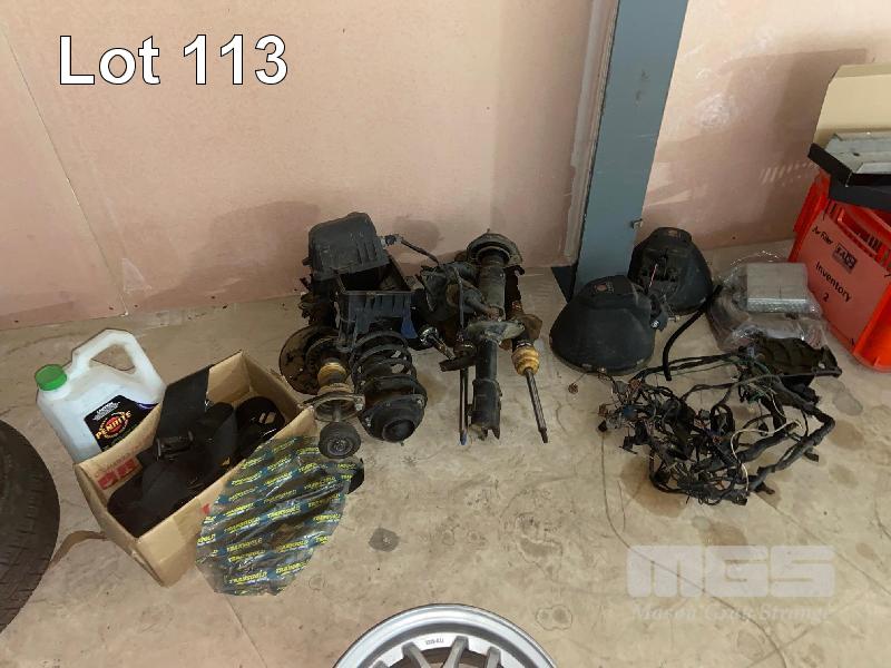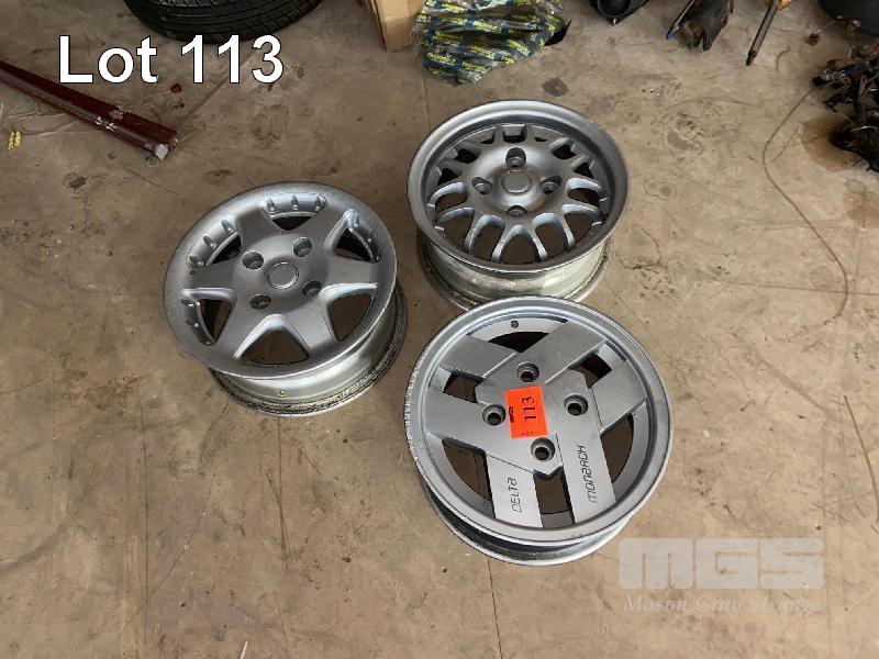 3 x ASSORTED ALLOY 4 STUD WHEELS, 13" + ASSORTED CAR PARTS