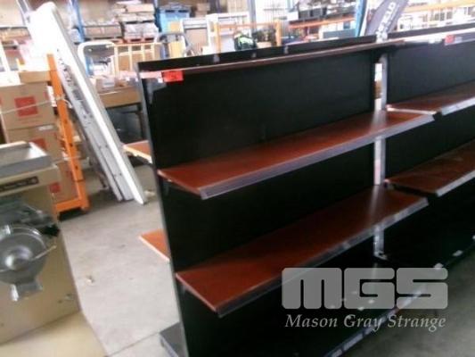 DISPLAY SHELVING, METAL & TIMBER, DOUBLE SIDED, 4 TIER, MOBILE