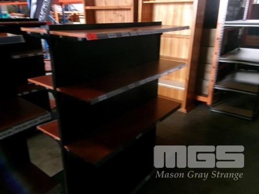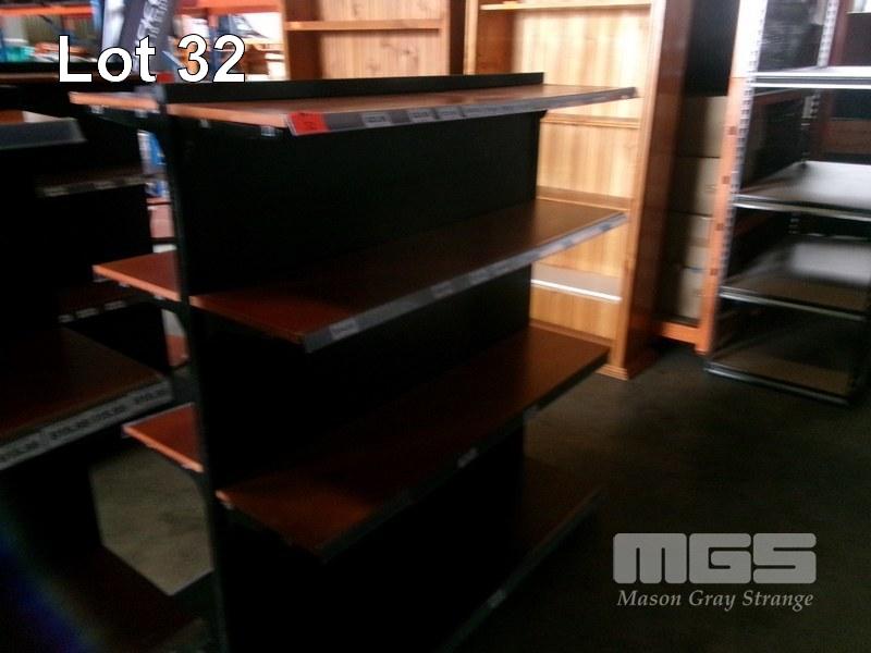 DISPLAY SHELVING, METAL & TIMBER, DOUBLE SIDED, 4 TIER, MOBILE