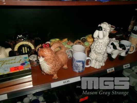 15 x ASSORTED ORNAMENTS, MUGS, DOGS, TEAPOT, SPECIAL FRIEND MIRRORED BOX, FRUIT BARROW, ETC
