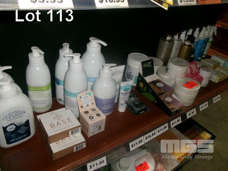 ASSORTED PRODUCTS INCLUDING SOAPS, CREAMS, TOOTHPASTE, MOO GOO, WASH, SHAMPOO BARS, ETC 1 x SHELF