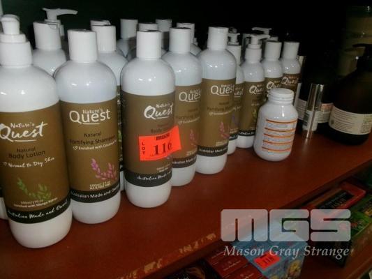 ASSORTED PRODUCTS INCLUDING QUEST BODY LOTIONS, WASH, SHAMPOO, ETC