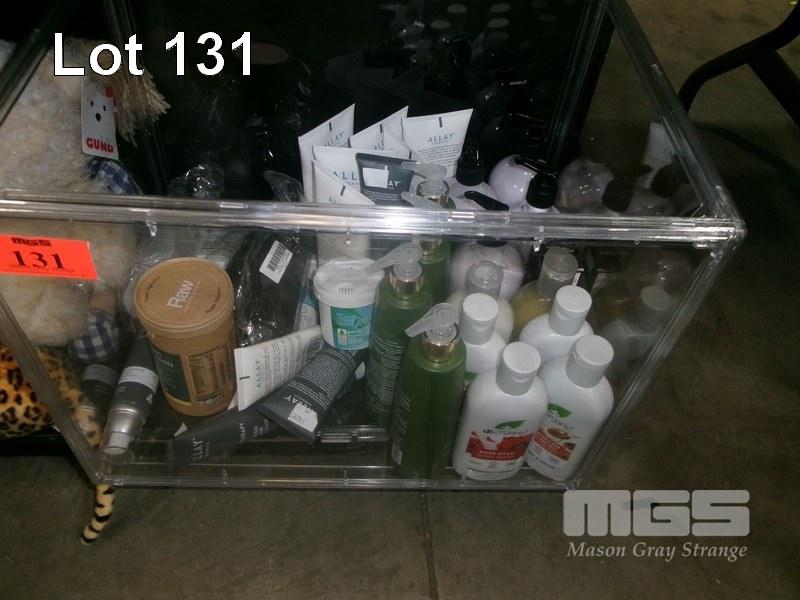 ASSORTED PRODUCTS INCLUDING BODY WASH, BODY LOTION, CALM CLEANSER, ORGANIC MULTI VITAMIN, ETC 1 x PLASTIC CONTAINER
