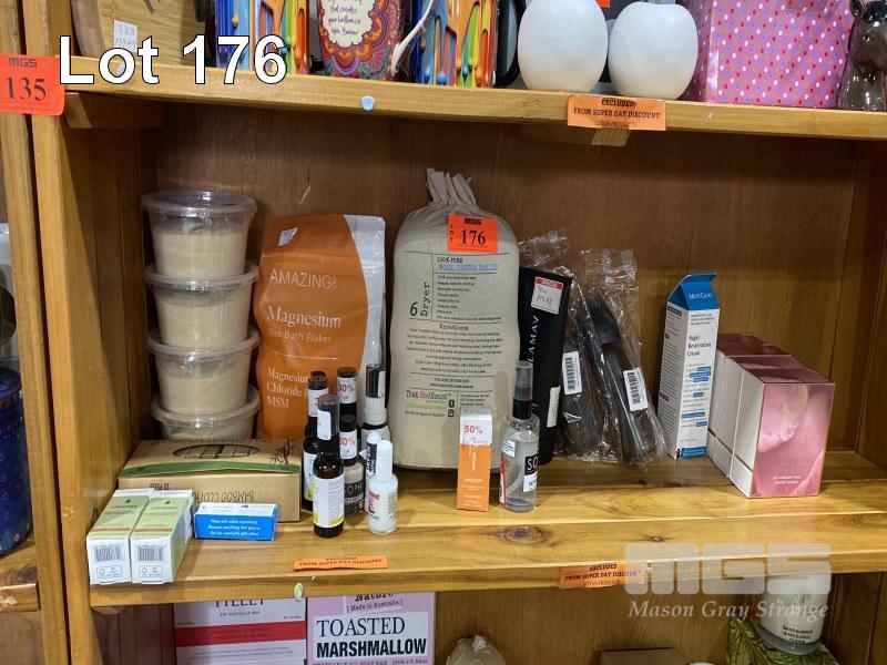 ASSORTED PRODUCTS, BREWERS YEAST, BATH FLAKES, WOOL DRYER BALLS, LIP STICKS, LOTIONS, ETC 1 x SHELF