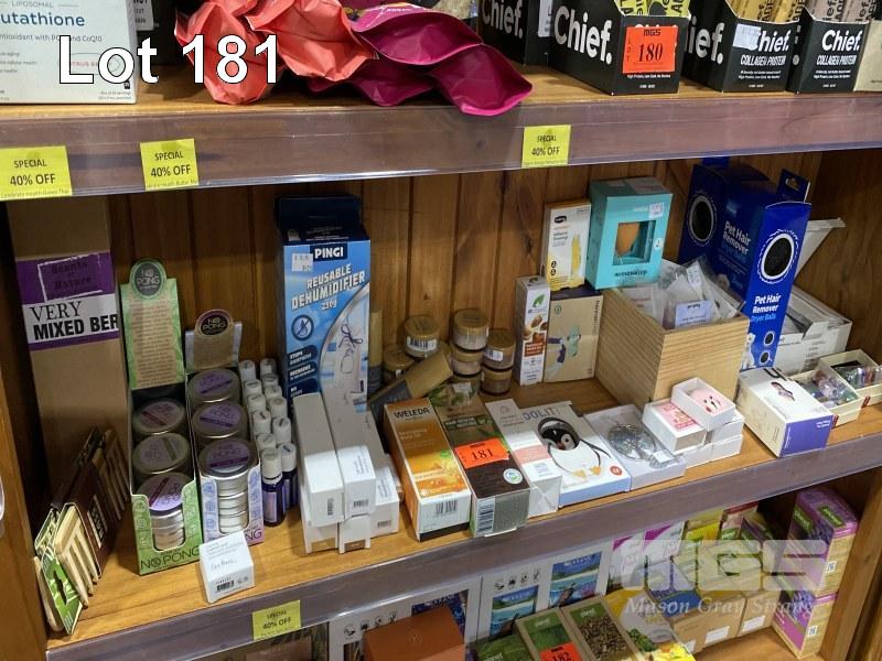 ASSORTED PRODUCTS, NO PONG, BODY OILS, HEMP POILS, ECO MINERAL FOUNDATIONS, ESSENTIAL OILS, ETC 1 x SHELF