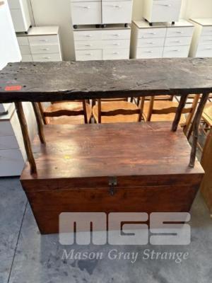 VINTAGE PINE TRUNK AND HARDWOOD SEAT
