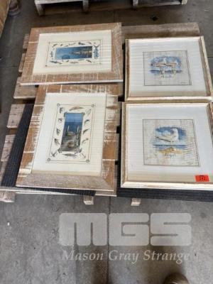 2 x FRAMED PAINTINGS (FISHING), 2 x PAINTINGS SEAGULLS BY PASCAL CESSOU 1 x PALLET