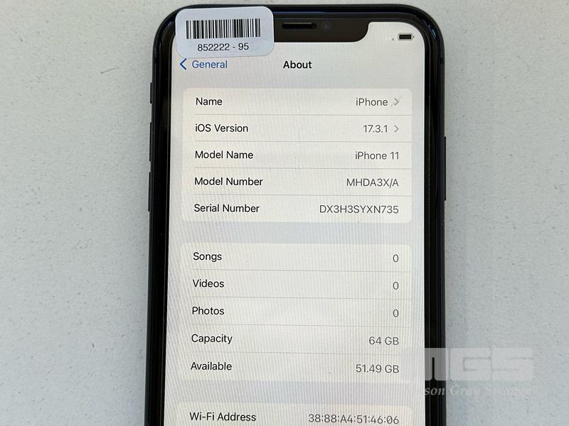 APPLE iPHONE 11, 64GB, MODEL MHDA3X/A, A2221, BLACK, BATTERY HEALTH 94% (NO CABLE, NO CHARGER) S/N:DX3H3SYXN735