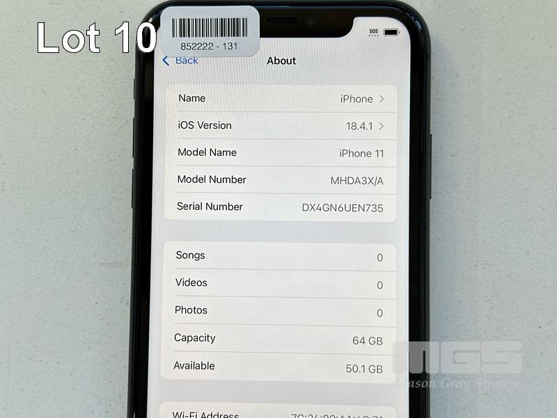 APPLE iPHONE 11, 64GB, MODEL MHDA3X/A, A2221, BLACK, BATTERY HEALTH 89% (NO CABLE, NO CHARGER) S/N:DX4GN6UEN735