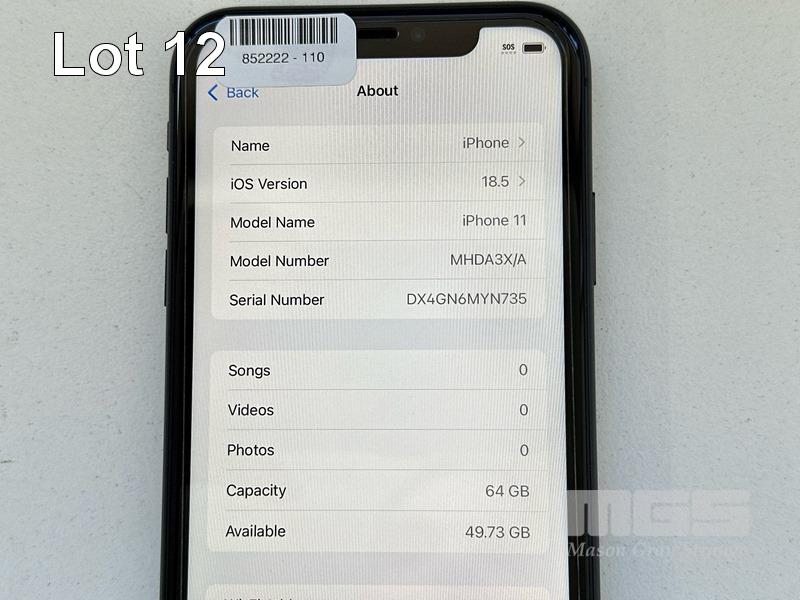 APPLE iPHONE 11, 64GB, MODEL MHDA3X/A, A2221, BLACK, BATTERY HEALTH 88% (NO CABLE, NO CHARGER) S/N:DX4GN6MYN735