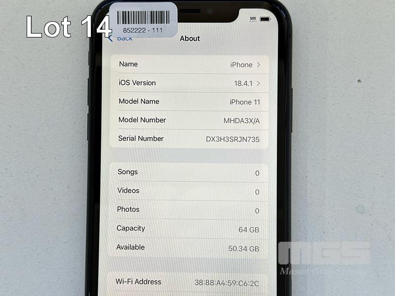 APPLE iPHONE 11, 64GB, MODEL MHDA3X/A, A2221, BLACK, BATTERY HEALTH 86% (NO CABLE, NO CHARGER) S/N:DX3H3SRJN735
