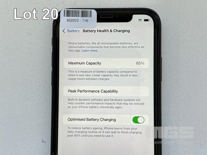 APPLE iPHONE 11, 64GB, MODEL MHDA3X/A, A2221, BLACK, BATTERY HEALTH 85% (NO CABLE, NO CHARGER) S/N:DX3H3FTAN735