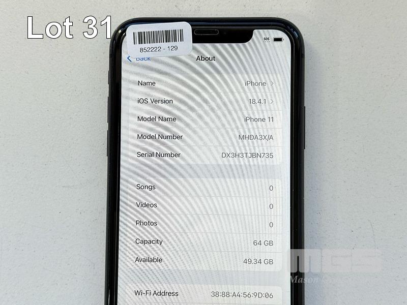 APPLE iPHONE 11, 64GB, MODEL MHDA3X/A, A2221, BLACK, BATTERY HEALTH 83% (NO CABLE, NO CHARGER) S/N:DX3H3TJBN735