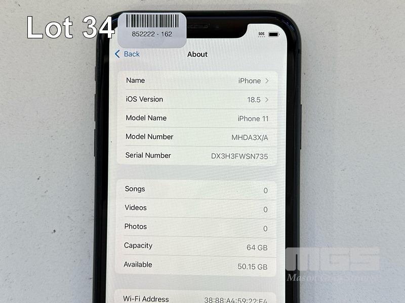 APPLE iPHONE 11, 64GB, MODEL MHDA3X/A, A2221, BLACK, BATTERY HEALTH 83% (NO CABLE, NO CHARGER) S/N:DX3H3FWSN735