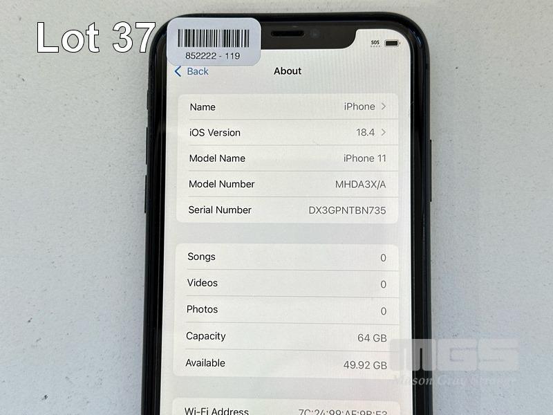 APPLE iPHONE 11, 64GB, MODEL MHDA3X/A, A2221, BLACK, BATTERY HEALTH 82% (NO CABLE, NO CHARGER) S/N:DX3GPNTBN735