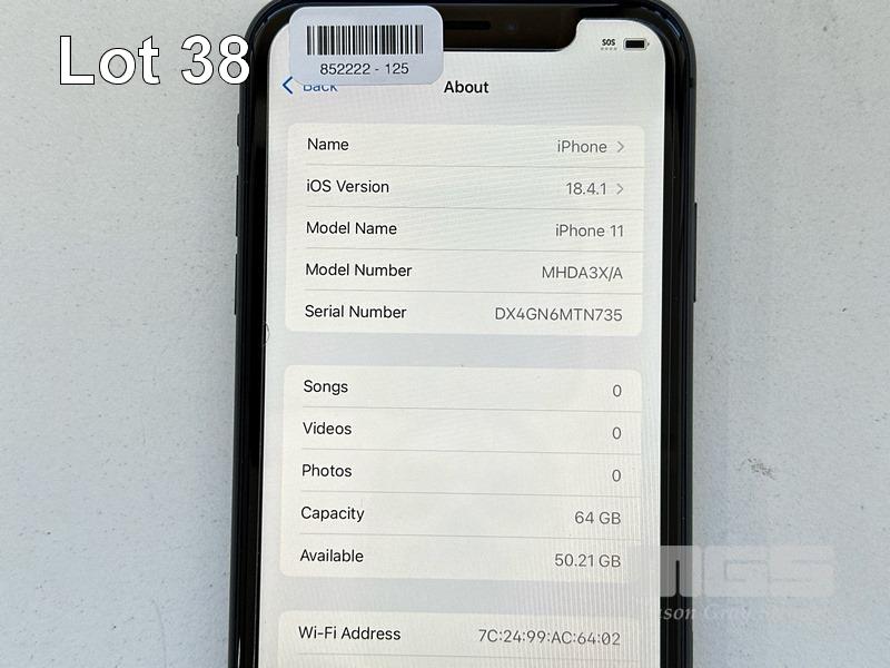 APPLE iPHONE 11, 64GB, MODEL MHDA3X/A, A2221, BLACK, BATTERY HEALTH 82% (NO CABLE, NO CHARGER) S/N:DX4GN6MTN735