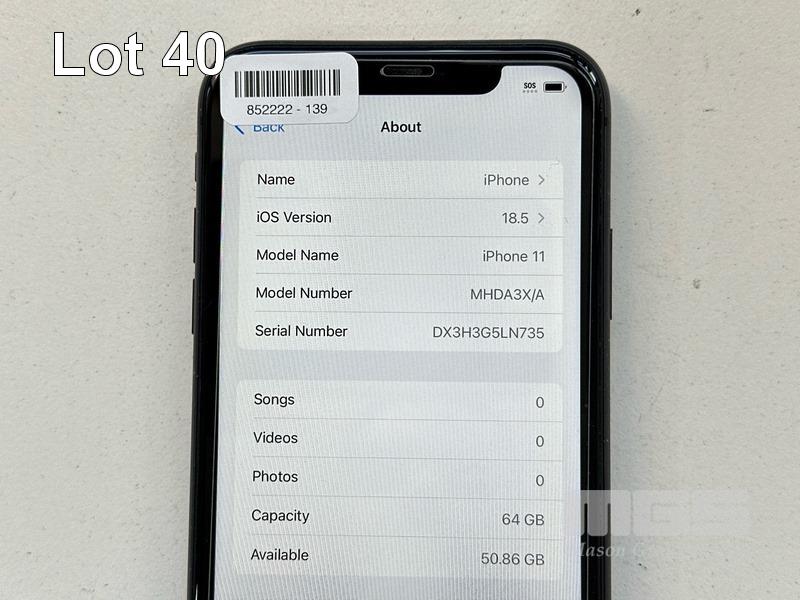 APPLE iPHONE 11, 64GB, MODEL MHDA3X/A, A2221, BLACK, BATTERY HEALTH 82% (NO CABLE, NO CHARGER) S/N:DX3H3G5LN735