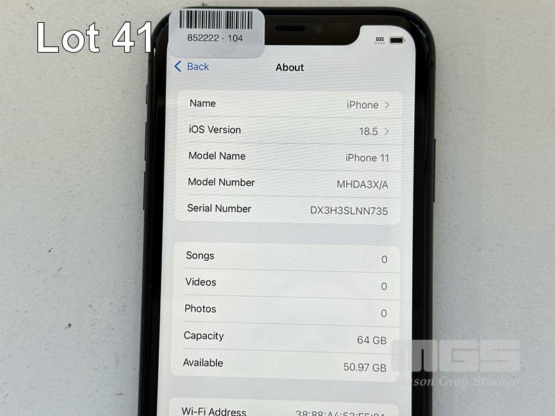 APPLE iPHONE 11, 64GB, MODEL MHDA3X/A, A2221, BLACK, BATTERY HEALTH 81% (NO CABLE, NO CHARGER) S/N:DX3H3SLNN735
