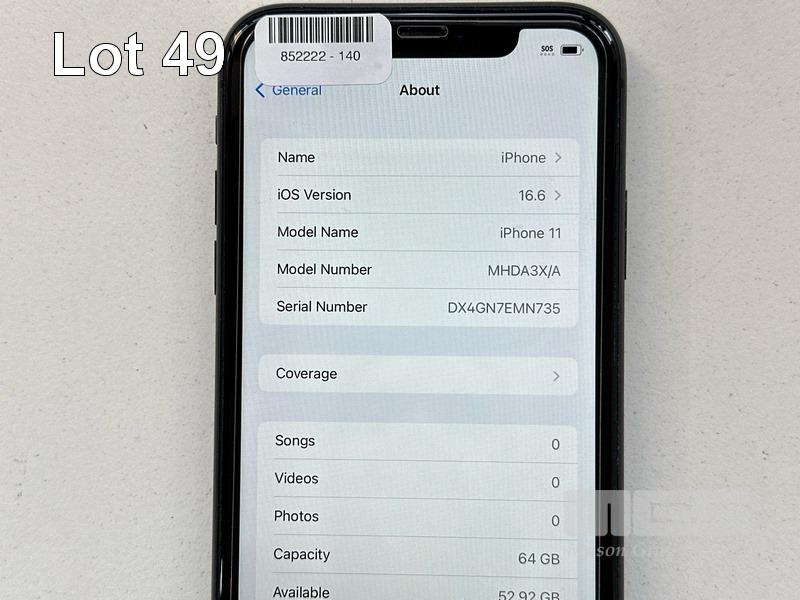 APPLE iPHONE 11, 64GB, MODEL MHDA3X/A, A2221, BLACK, BATTERY HEALTH 80% (NO CABLE, NO CHARGER) S/N:DX4GN7EMN735