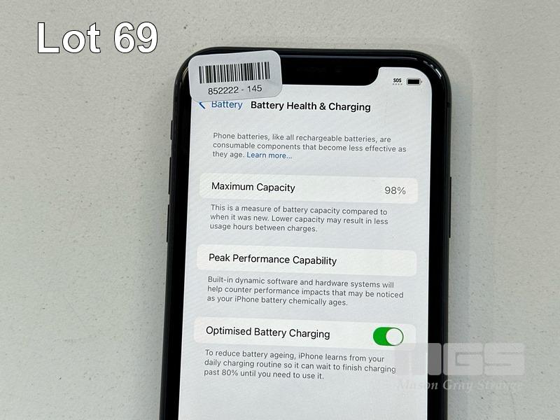 APPLE iPHONE 11, 64GB, MODEL MHDA3X/A, A2221, BLACK, BATTERY HEALTH 98% (NO CABLE, NO CHARGER) (NOTE: MINOR SCRATCHES ON SCREEN) S/N:FFWMLZENN735