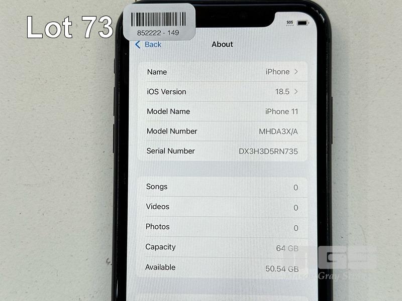 APPLE iPHONE 11, 64GB, MODEL MHDA3X/A, A2221, BLACK, BATTERY HEALTH 95% (NO CABLE, NO CHARGER) (NOTE: MINOR SCRATCHES ON SCREEN) S/N:DX3H3D5RN735