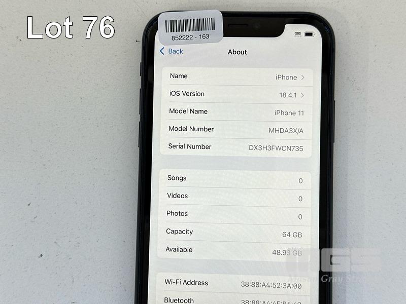 APPLE iPHONE 11, 64GB, MODEL MHDA3X/A, A2221, BLACK, BATTERY HEALTH 87% (NO CABLE, NO CHARGER) (NOTE: MINOR SCRATCHES ON SCREEN) S/N:DX3H3FWCN735