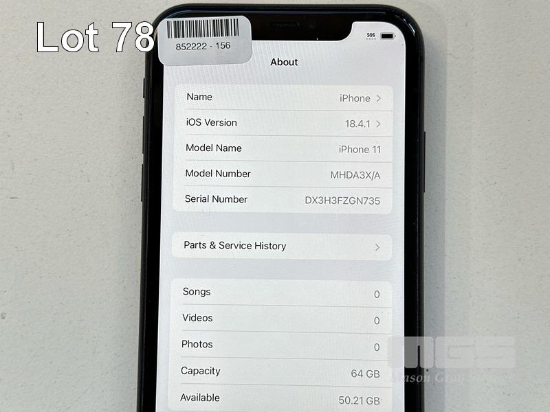 APPLE iPHONE 11, 64GB, MODEL MHDA3X/A, A2221, BLACK, BATTERY HEALTH 86% (NO CABLE, NO CHARGER) (NOTE: MINOR SCRATCHES ON SCREEN) S/N:DX3H3FZGN735