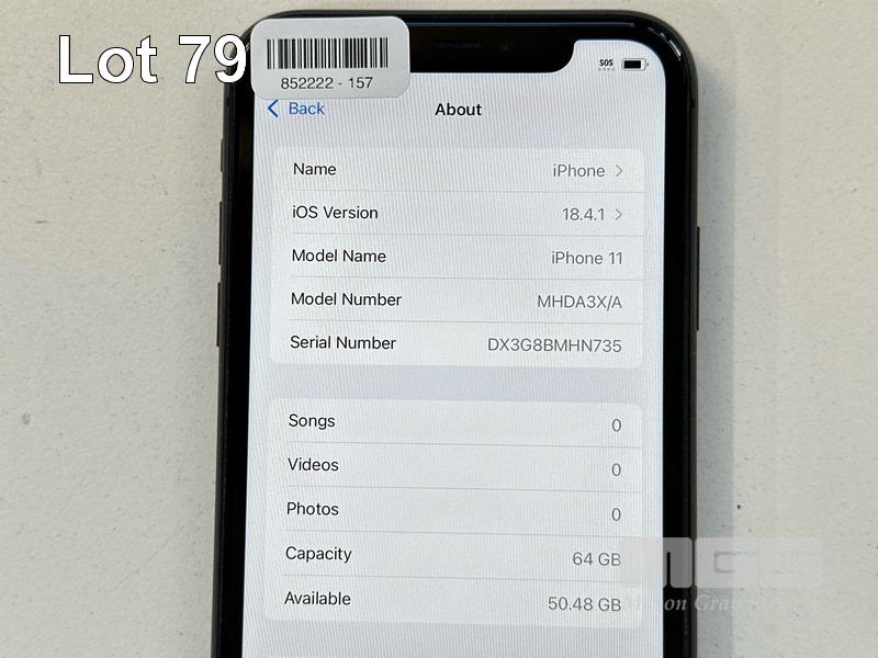 APPLE iPHONE 11, 64GB, MODEL MHDA3X/A, A2221, BLACK, BATTERY HEALTH 86% (NO CABLE, NO CHARGER) (NOTE: MINOR SCRATCHES ON SCREEN) S/N:DX3G8BMHN735