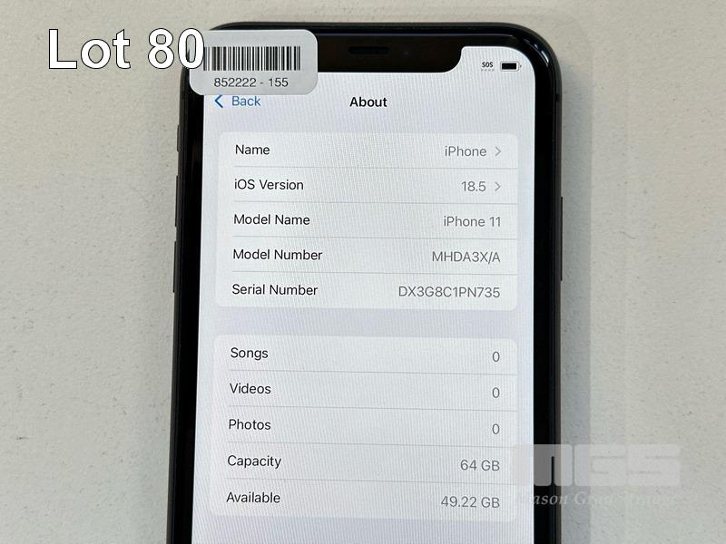 APPLE iPHONE 11, 64GB, MODEL MHDA3X/A, A2221, BLACK, BATTERY HEALTH 85% (NO CABLE, NO CHARGER) (NOTE: MINOR SCRATCHES ON SCREEN) S/N:DX3G8C1PN735