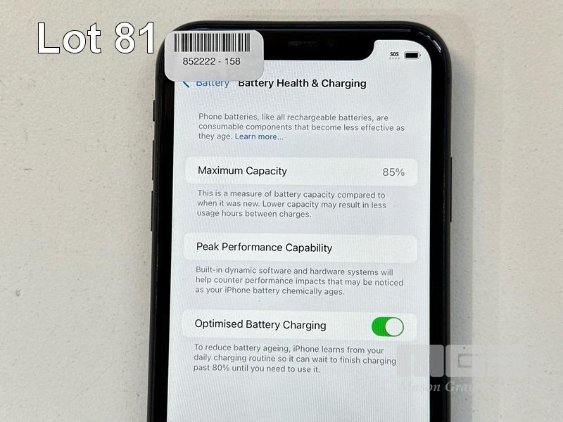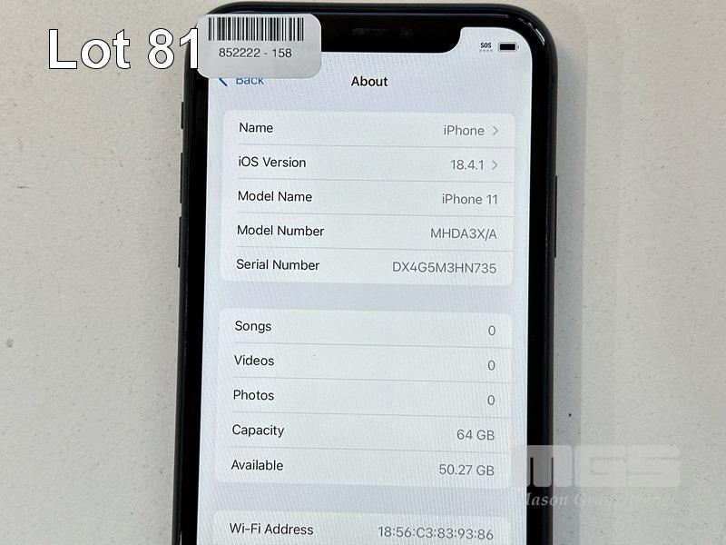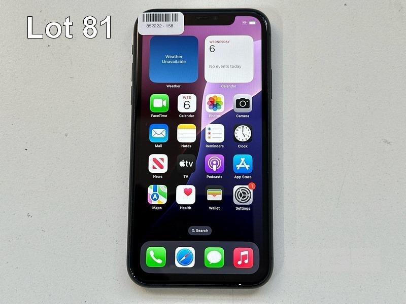 APPLE iPHONE 11, 64GB, MODEL MHDA3X/A, A2221, BLACK, BATTERY HEALTH 85% (NO CABLE, NO CHARGER) (NOTE: MINOR SCRATCHES ON SCREEN) S/N:DX4G5M3HN735