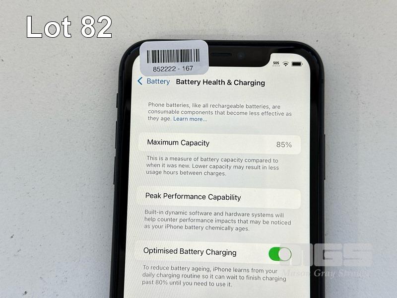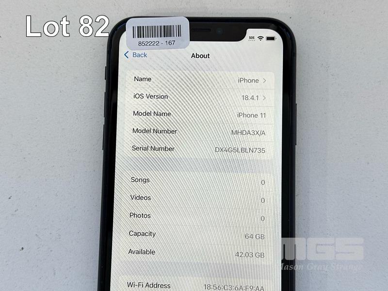 APPLE iPHONE 11, 64GB, MODEL MHDA3X/A, A2221, BLACK, BATTERY HEALTH 85% (NO CABLE, NO CHARGER) (NOTE: MINOR SCRATCHES ON SCREEN) S/N:DX4G5LBLN735