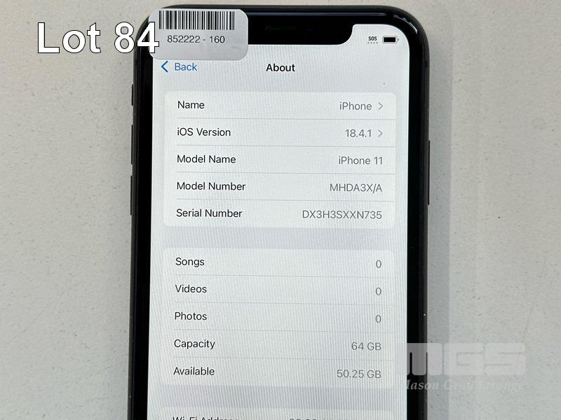 APPLE iPHONE 11, 64GB, MODEL MHDA3X/A, A2221, BLACK, BATTERY HEALTH 83% (NO CABLE, NO CHARGER) (NOTE: MINOR SCRATCHES ON SCREEN) S/N:DX3H3SXXN735
