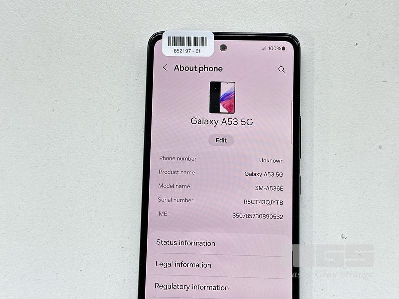 SAMSUNG GALAXY A53 5G SMARTPHONE, MODEL SM-A536E, 128GB (NO USB-C CABLE, NO CHARGER) S/N:R5CT43QJYTB