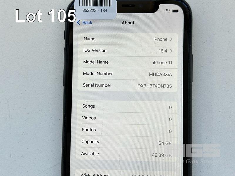 APPLE iPHONE 11, 64GB, MODEL MHDA3X/A, A2221, BLACK, BATTERY HEALTH 94% (NO CABLE, NO CHARGER) (NOTE: MAJOR SCRATCHES ON SCREEN) S/N:DX3H3T4DN735