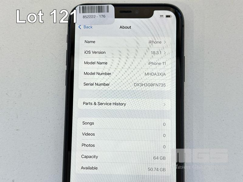 APPLE iPHONE 11, 64GB, MODEL MHDA3X/A, A2221, BLACK, BATTERY HEALTH 76% (NO CABLE, NO CHARGER) (NOTE: BATTERY SERVICE MESSAGE, SCRATCHES ON SCREEN) S/N:DX3H3G0FN735