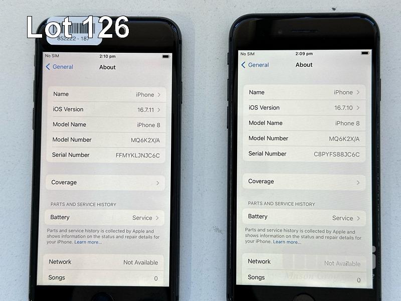 2 x APPLE iPHONE 8, 64GB, SPACE GREY, MODEL MQ6K2X/A (NOTE: BATTERY SERVICE MESSAGE) (NO CABLES, NO CHARGERS) S/N:FFMYKLJNJC6C, C8PYFS88JC6C