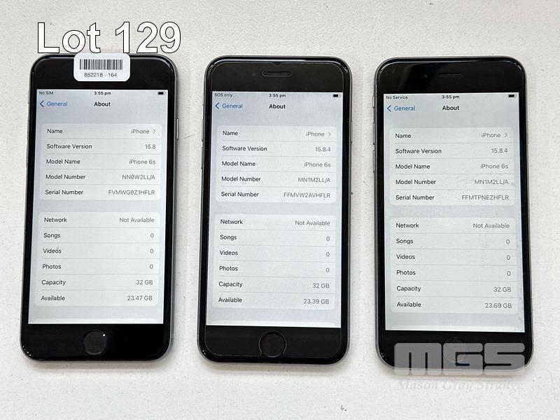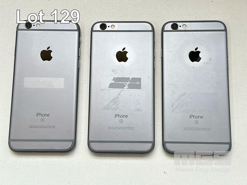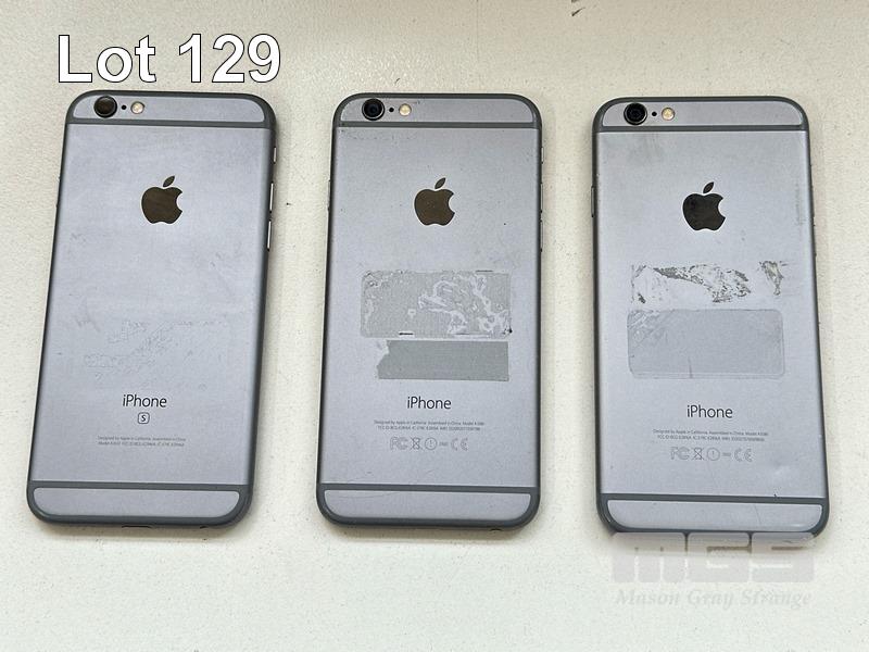 9 x APPLE iPHONES INC. - 5 x APPLE iPHONE 6S, 32GB, A1688 - 2 x APPLE iPHONE 6S, 32GB, A1688 (BATTERY SERVICE MESSAGE) - 2 x APPLE iPHONE 6, 16GB, A1586 (NO CABLES, NO CHARGERS) S/N:FVMWG0Z1HFLR, FFMVW2AVHFLR, FFMTPNEZHFLR, DNPTF2RMHFLR, F17S4N4VHFLR, FFNTGV6KHFLR, FK1XP32HHFLM, F18Q4J33G5MN, DNRPQU46G5MN