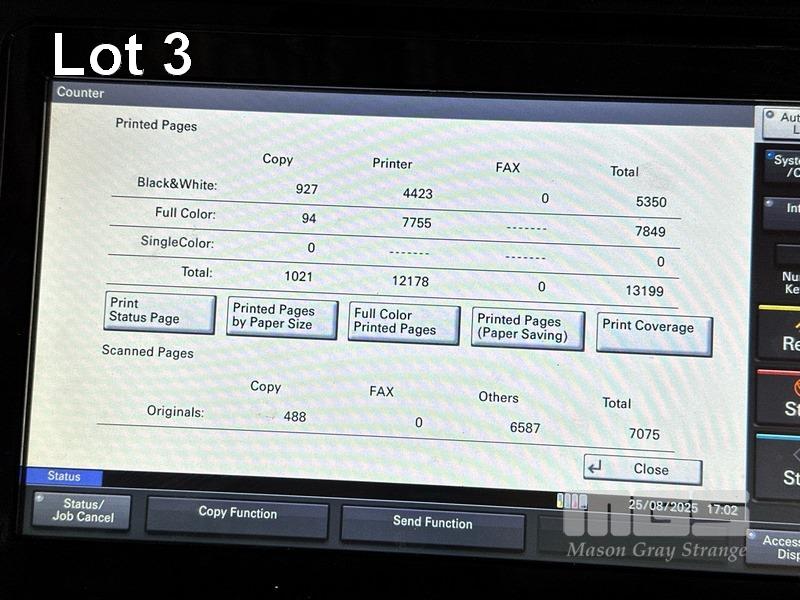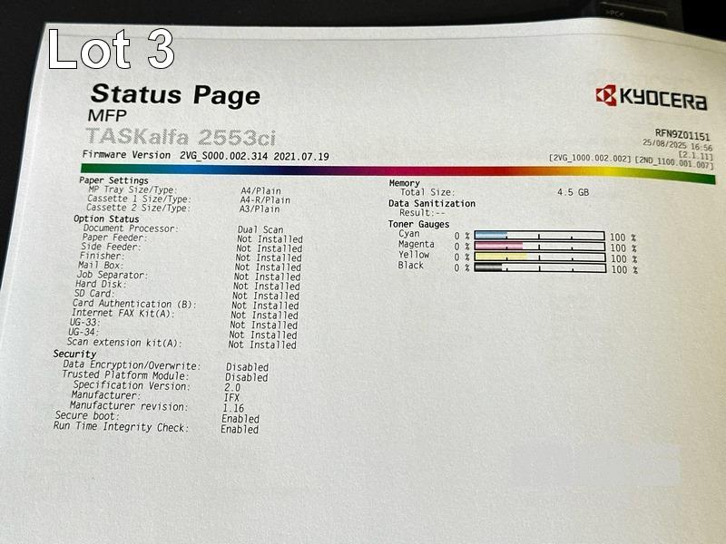 PHOTOCOPIER, KYOCERA TASKalfa 2553ci COLOUR DIGITAL, ADF, PRINTER USB & NETWORK PORTS, 7,849 COLOUR & 5,350 B&W COPIES SHOWING (TEST PAGE ATTACHED) S/N:RFN9Z01151